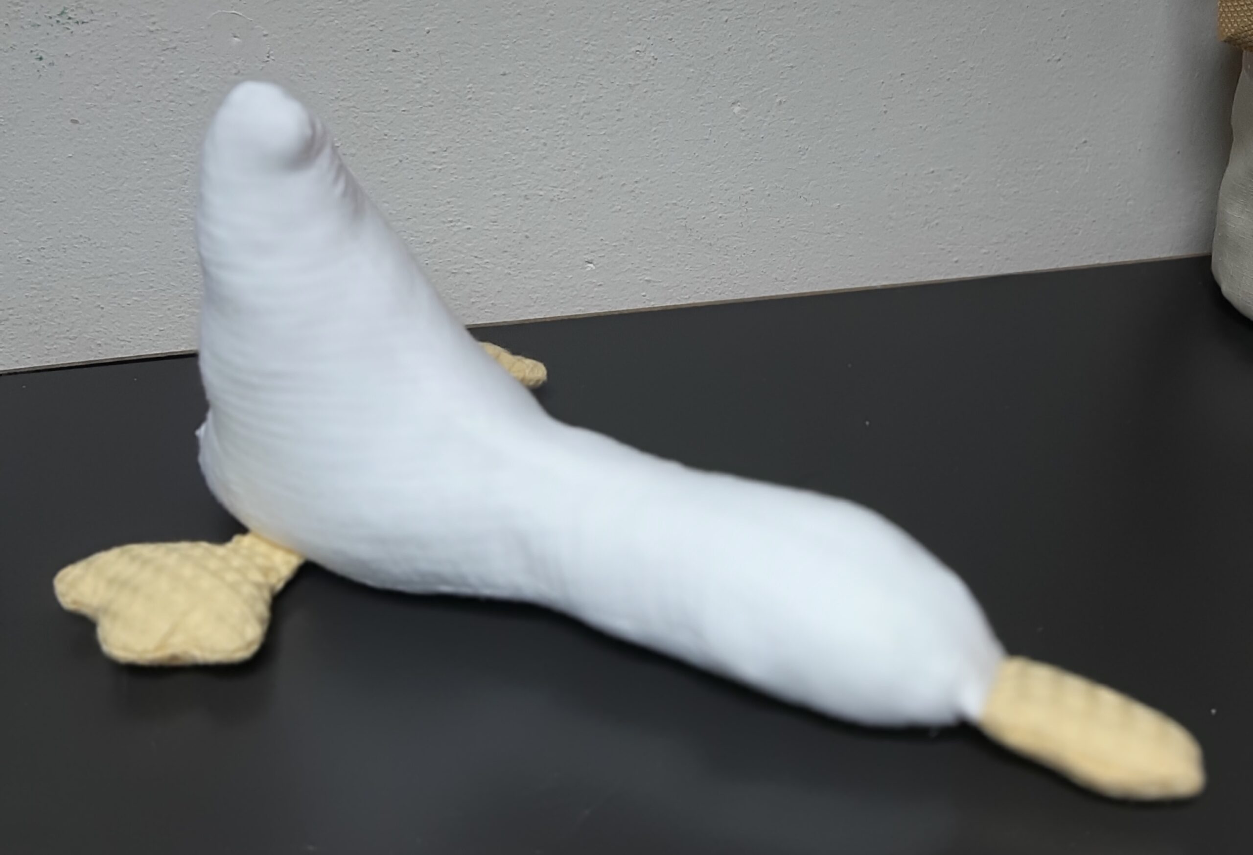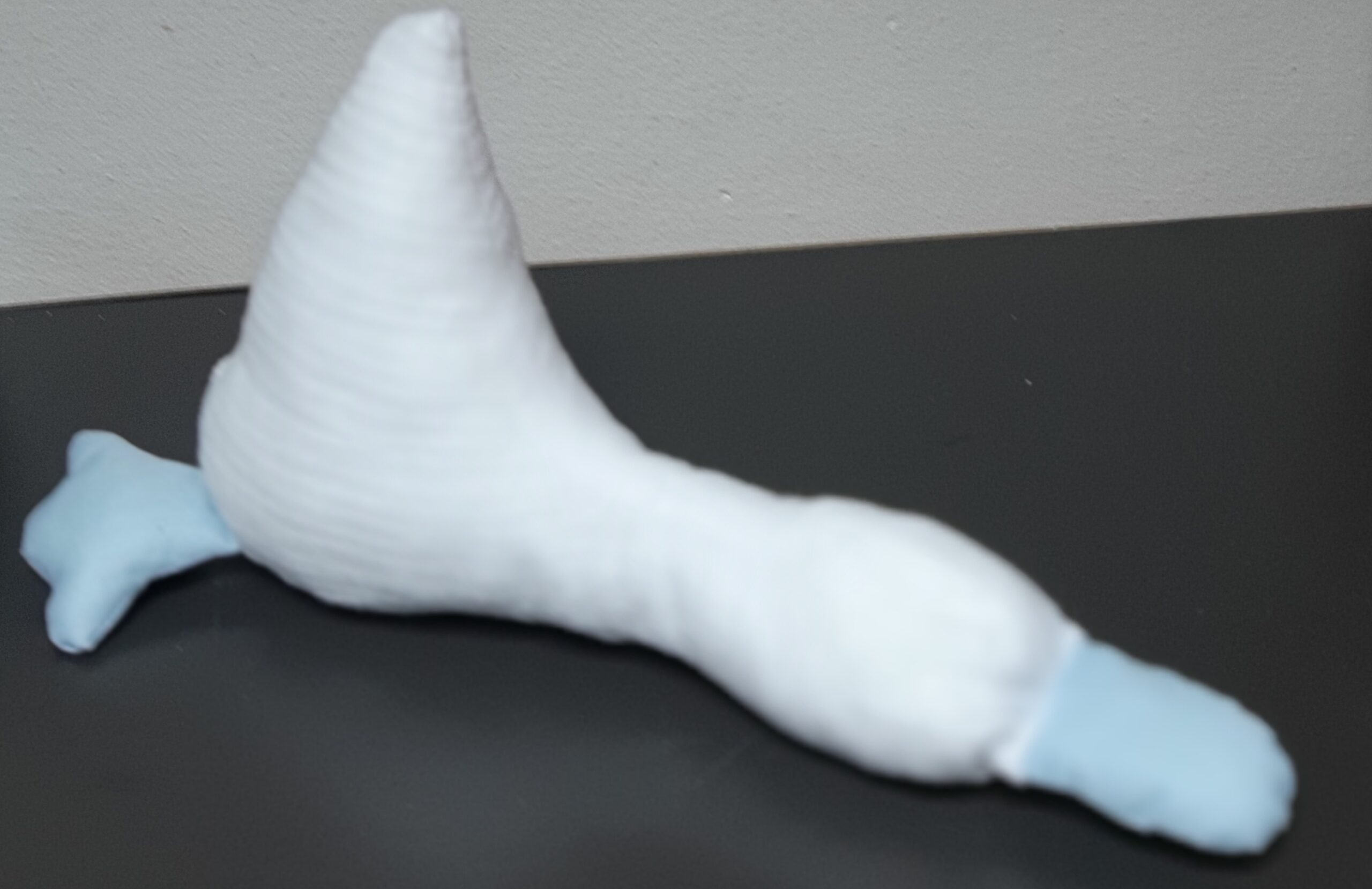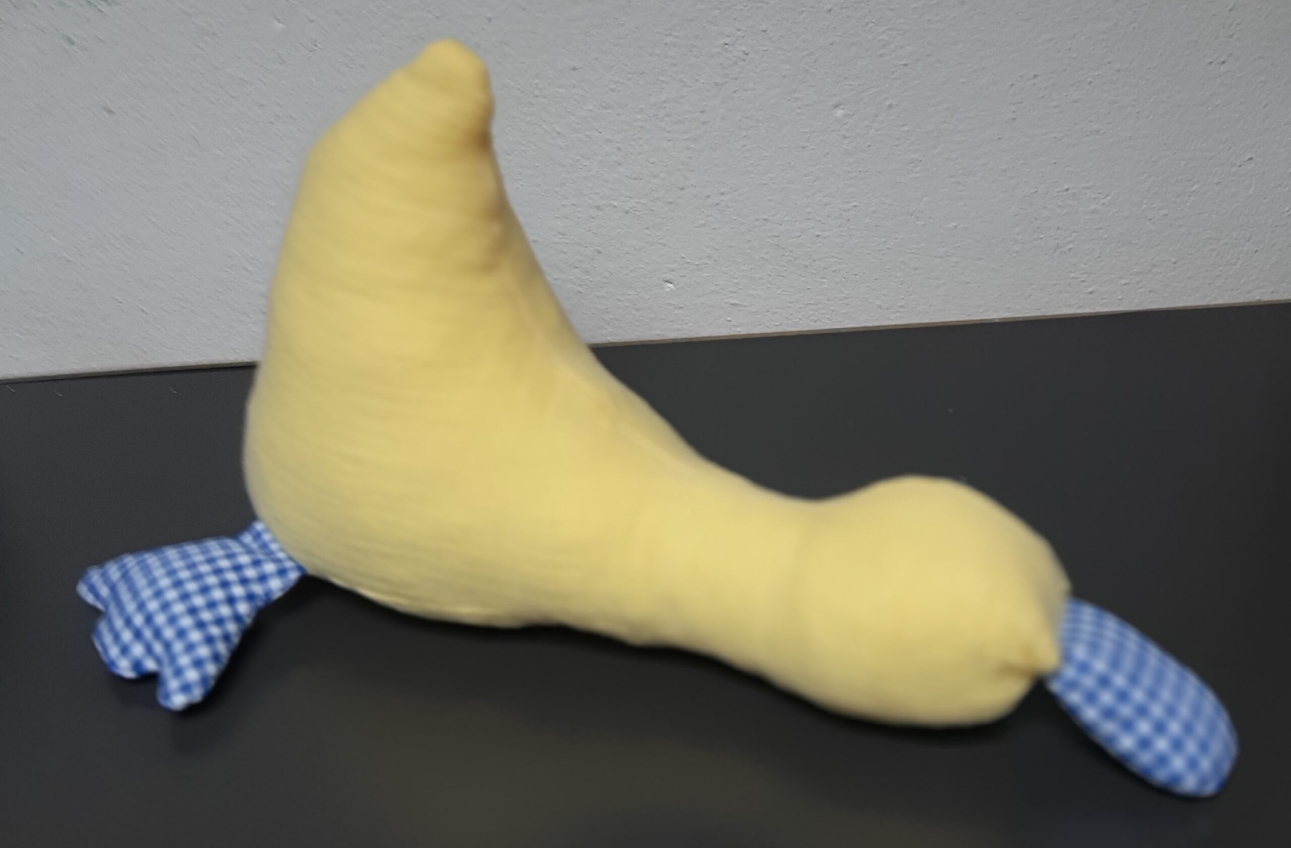 Πάπια αγκαλιάς. Απαλή ραμμενη στο χερι από βαμβακερή μουσελίνα, ιδανικη παρέα στο νεογέννητο. Διάσταση 30χ17χ20